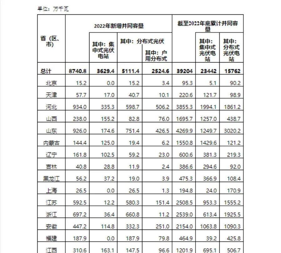 官宣!2022年各省光伏装机量明细宣布